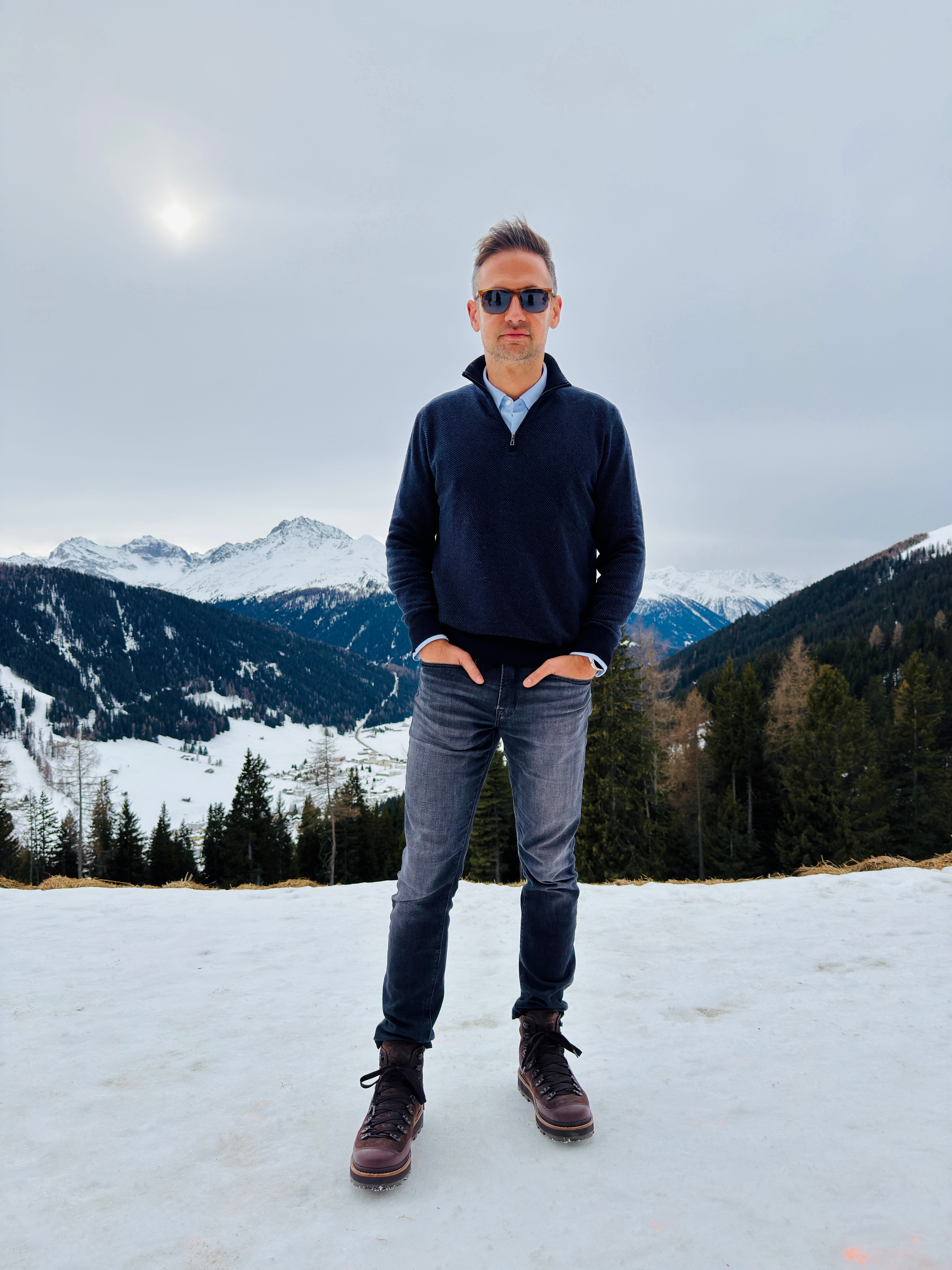 In years past, I always wore a fresh pair of Air Jordan sneakers, just to give Davos a little splash of color. But Olaf teased me and said I looked like a kid, so I switched gears. This time, I bought a pair of boots and fell in love with them. Consider me a boot guy now. Perhaps it’s part of my brand re-invention (next year maybe I’ll go all-in with a cowboy hat, who knows).